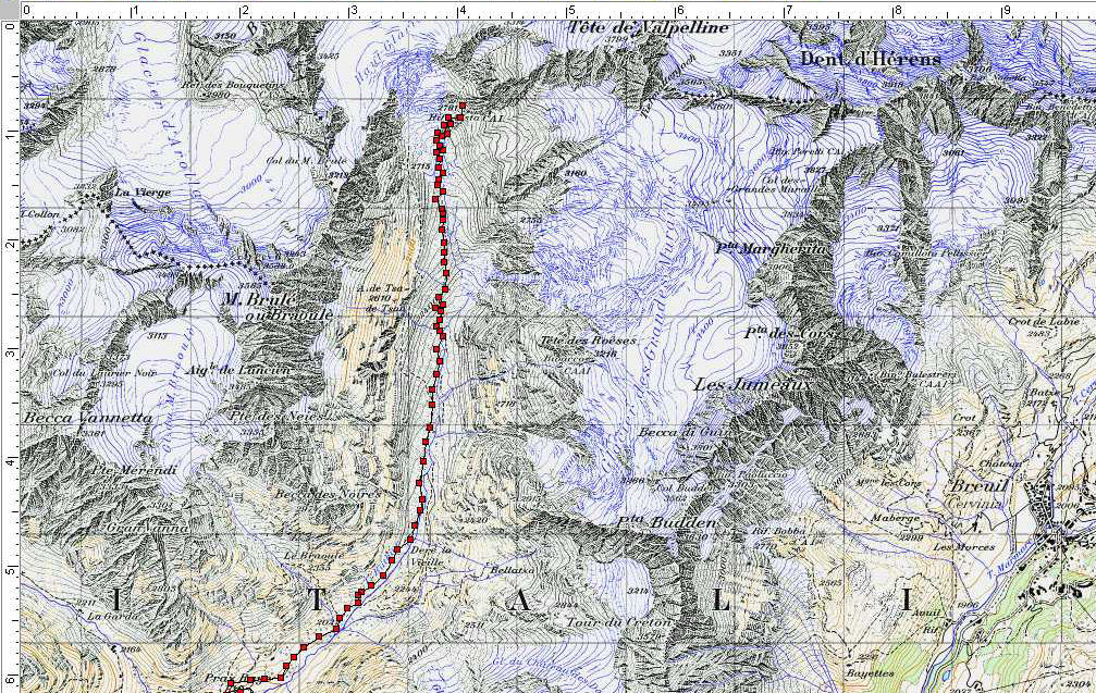 Die 3. Tagestour ist mit der dünnen scwarzen Linie und den roten Rechtecken gekennzeicht.