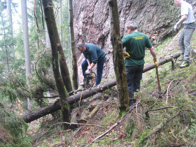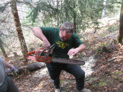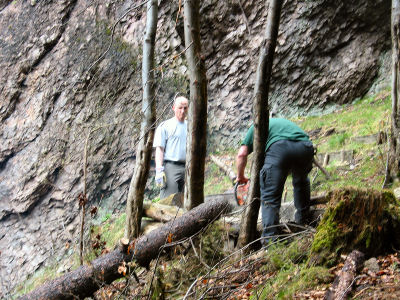 ![]() Gelegentlich fällt der Baum dem Wind zum Opfer. Christian hilft bei der Schadensberäumung. |