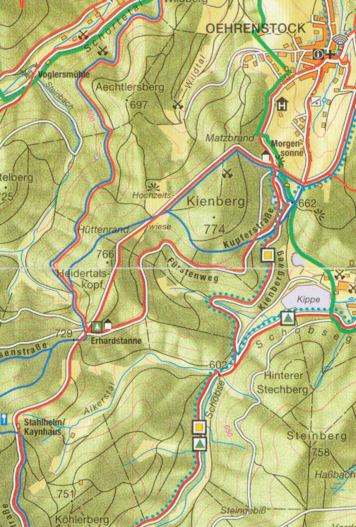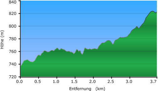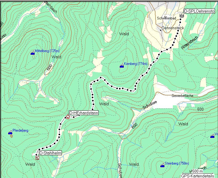 Höhenprofil vom Sportplatz Oehenstock zum Stahlhelm (Kaynhaus)